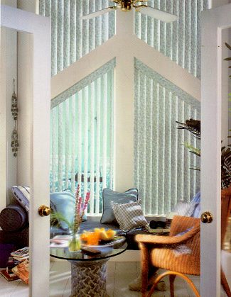 Miramar vinyl verticals in Blue with our vertical specialty system for angled windows. CLICK HERE TO RETURN TO THE THUMBNAIL GALLERY